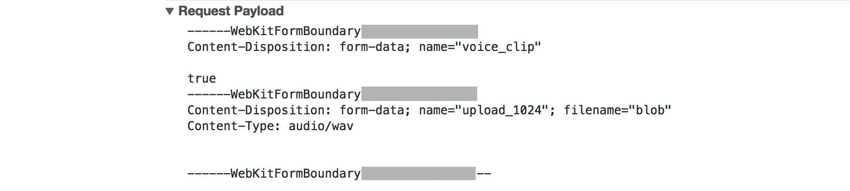 Facebook messenger records the audio streaming data as before but then converts it in a WebWorker to a WAV format. They then send that format to the backend.